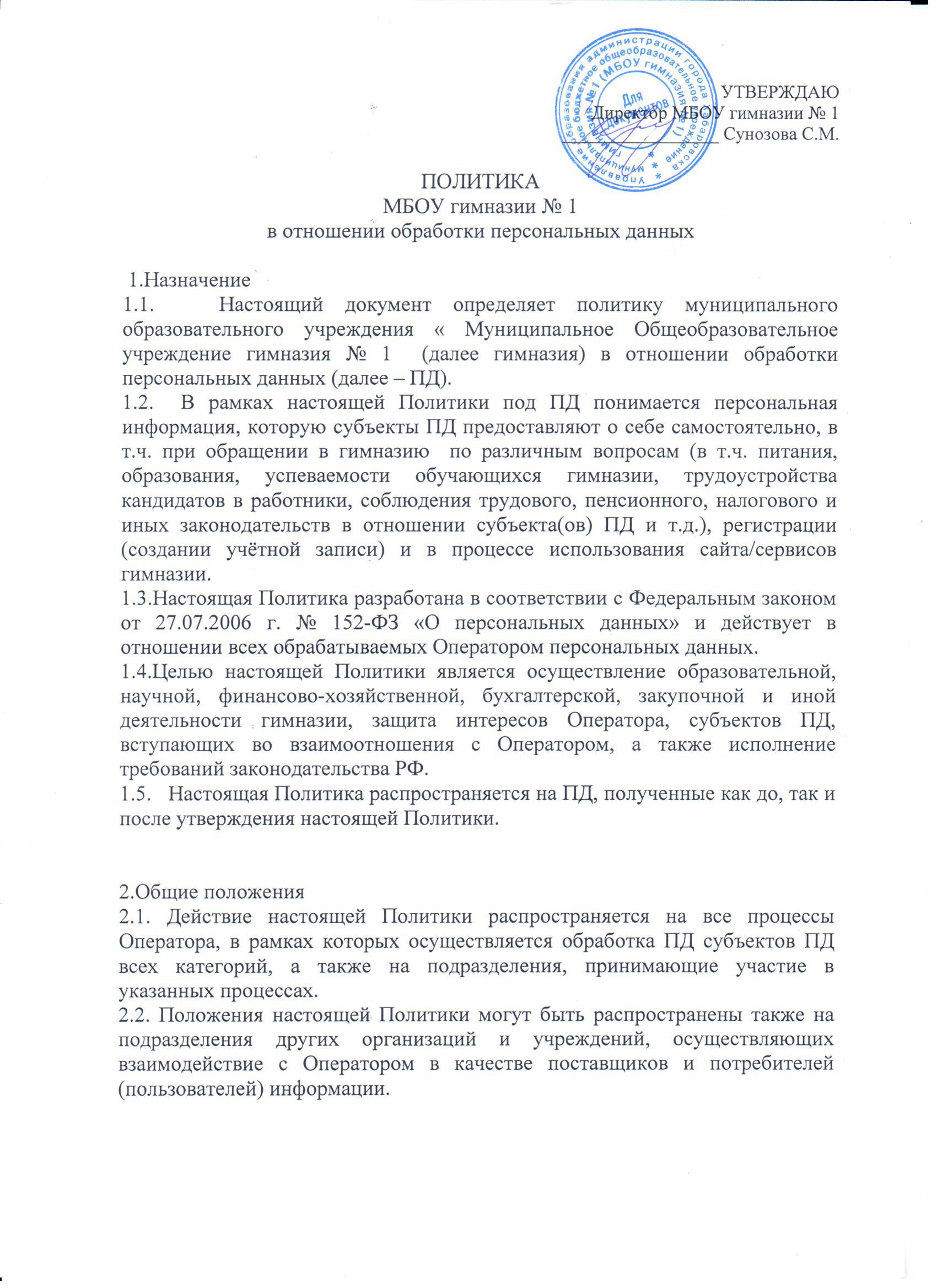 Политика образовательного учреждения в отношении обработки персональных данных сотрудников и обучающихся 2015